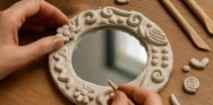 In diesem Workshop gestaltest du deinen eigenen Spiegelrahmen mit lufttrocknender Modelliermasse (Air Dry Clay). Schritt für Schritt formst, modellierst und verzierst du den Rahmen ganz nach deinem Geschmack – ob verspielt, bunt oder natürlich.